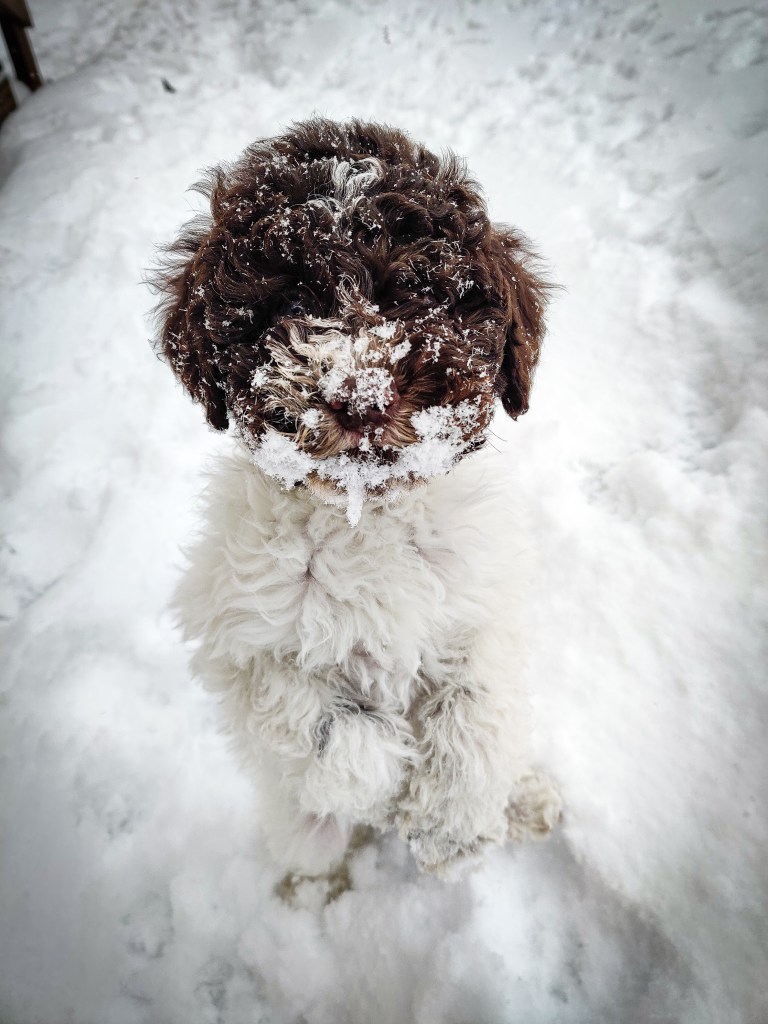 Verna on laumamme kiharakarvainen vahvistus, rodultaan lagotto romagnolo. Verna on syntynyt 22.12.2021 Italian Verniossa, josta hain sen meitä ilahduttamaan maaliskuussa 2022. Tähän mennessä neito on osoittautunut varsinaiseksi riiviöksi, edessä on varmasti useampia tahtojen taistoja. Vernan kanssa olisi tarkoitus harrastaa näyttelyiden lisäksi nenänkäyttöjuttuja, kuten nose workia, toiveena myös jonain päivänä löytää maastosta tryffeleitä.